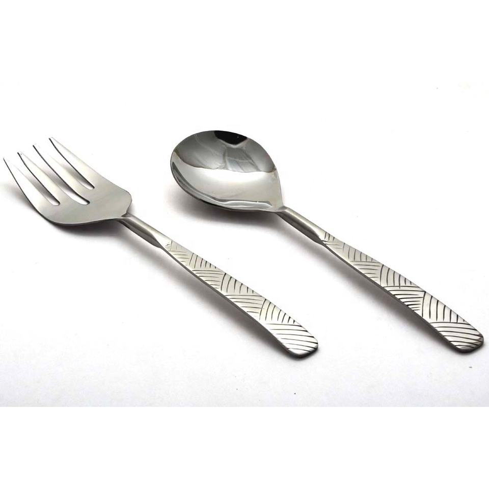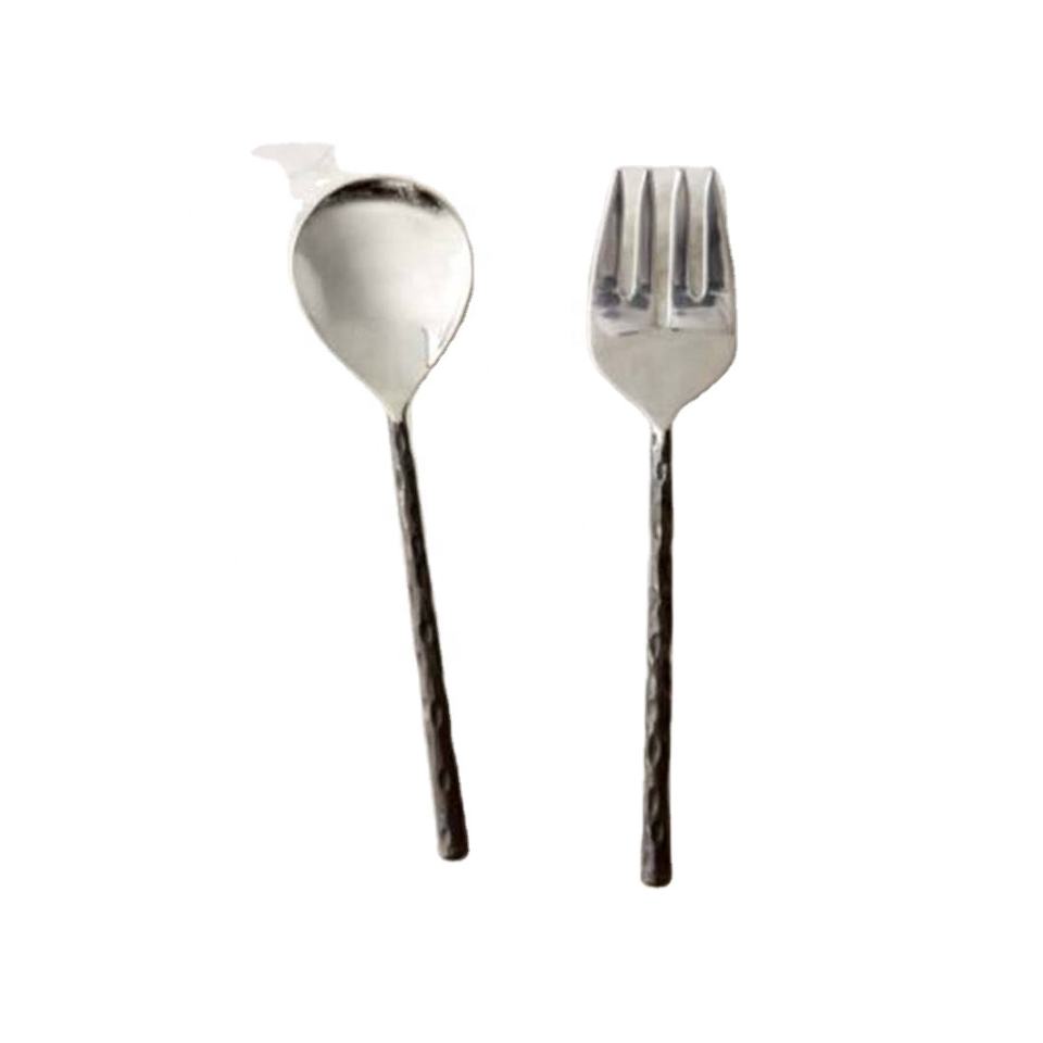 Best Quality Stainless Steel Luxury Cutlery Salad Server Set with Long Black Hammered Handle for Home Including Fork & Spoon Set