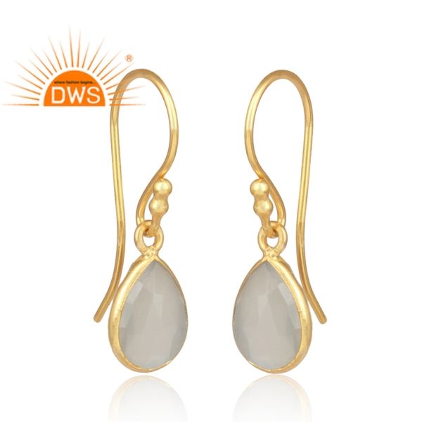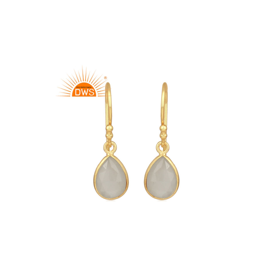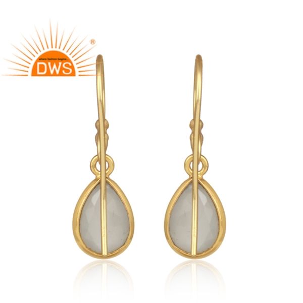 Best Quality Sterling Silver 18K Gold Plated Natural White Moon Stone Gemstone Dangle Earring Demi Fine Jewelry Manufacturer