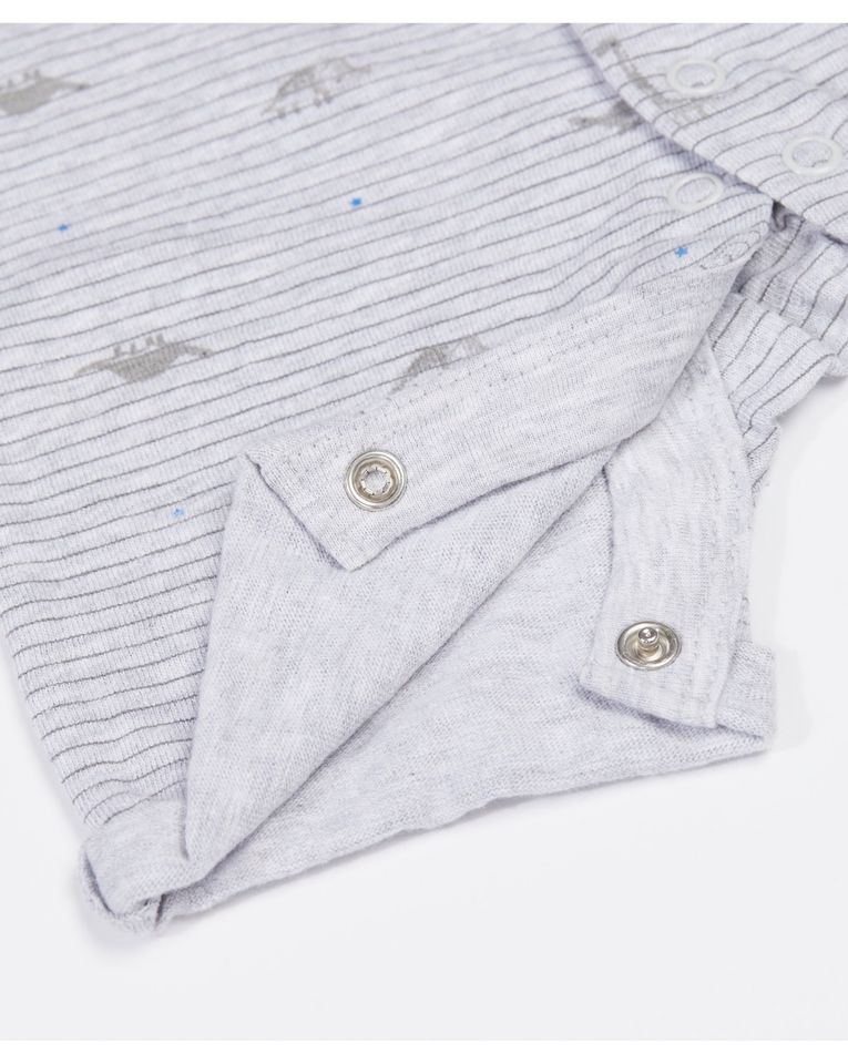 Best Quality Unisex Gray 100% Cotton Baby Romper Dino Stripe Pattern Half Sleeves Jumpsuit Comfortable Durable Knitted Fabric