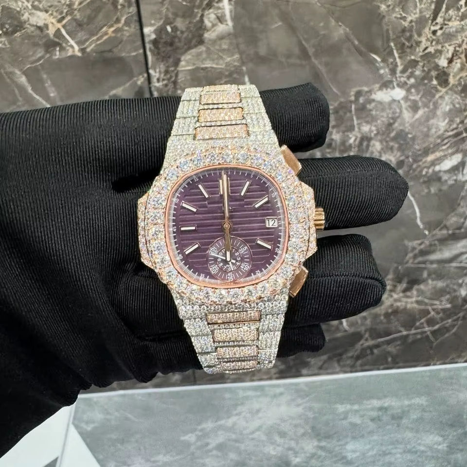 Best Quality VVS Moissanite Analog Display Luxury Sports Fashion Watch 20mm Stainless Steel Band 41mm Iced Mechanical Watches