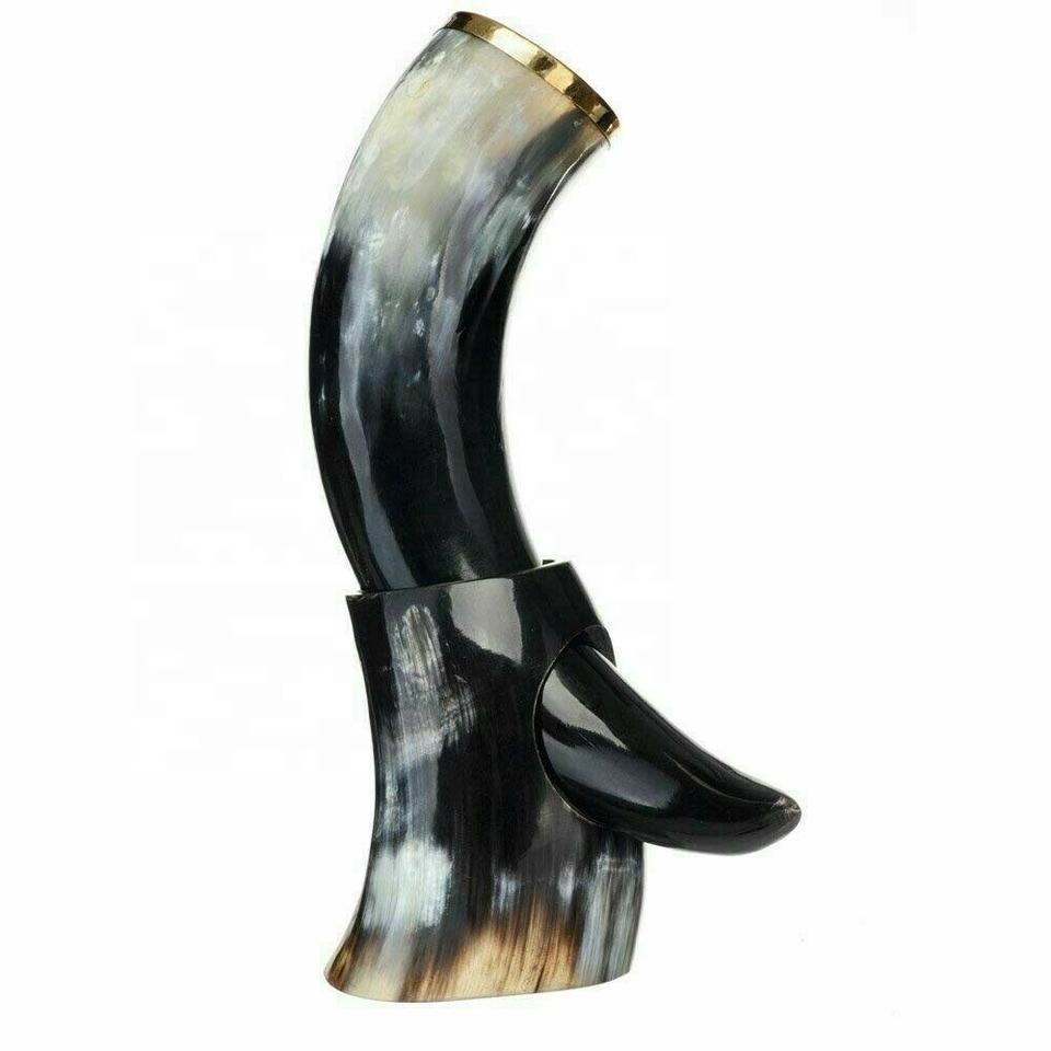 Best Quality Natural Viking Drinking Horn Christmas Decoration with Iron Stand for Mug Collection