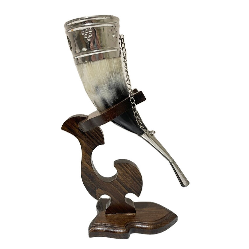 Best Quality Wholesale New Design Handmade Design of Horn Mug for Table Top Kitchen & Beer Bar with Wooden Stand