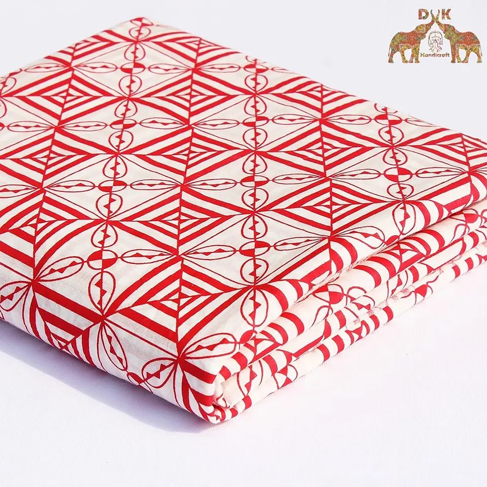Best Quality Wholesale Pure Cotton Geometric Print Fabric Hand Block Printed Cotton Cambric Fabric for Dress Material