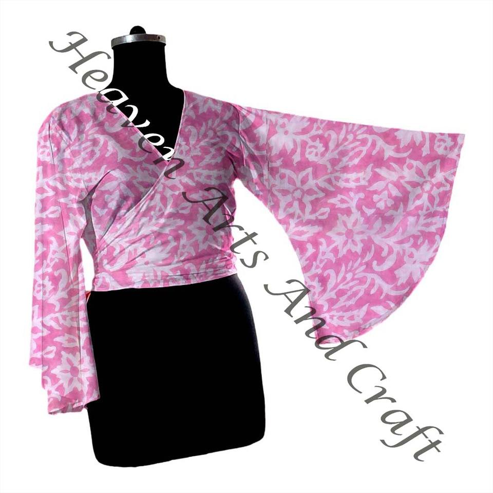 Hand Block Print Cotton Tie Tops Bell Sleeves