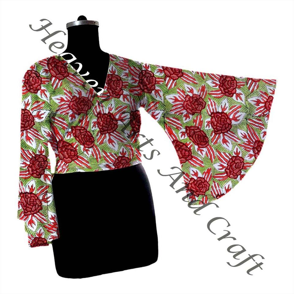Model Number:Hand Block Print Cotton Tie Tops Bell Sleeves
