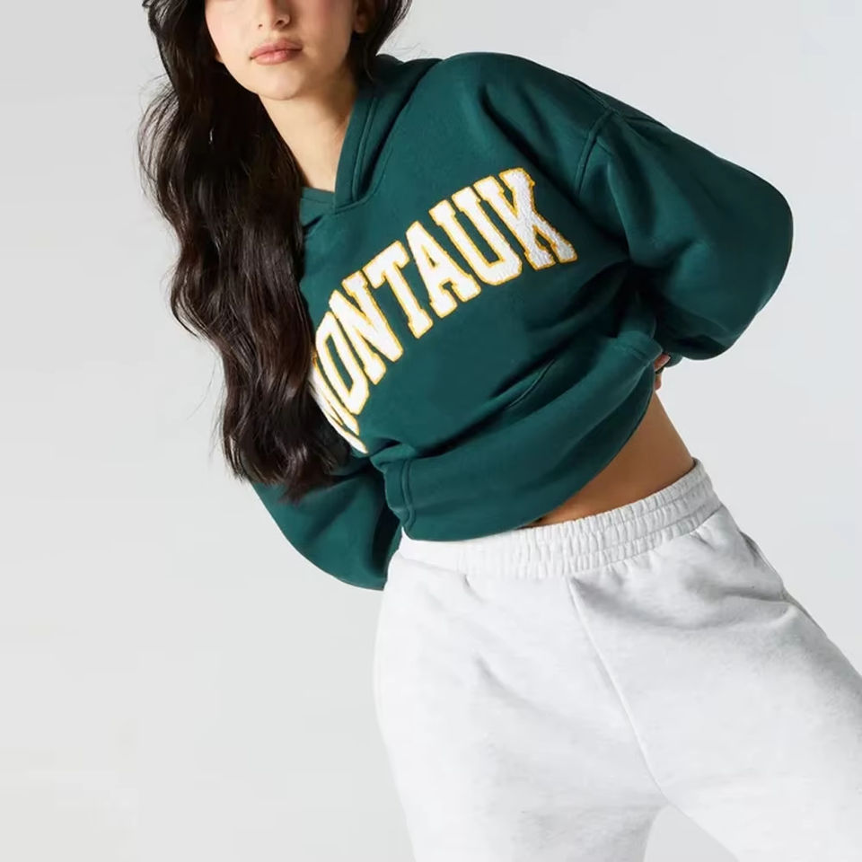 Best Quality Women's Hooded Sweatshirt Factory Made Chenille Embroidery Breathable Material for Winter Season