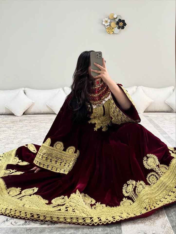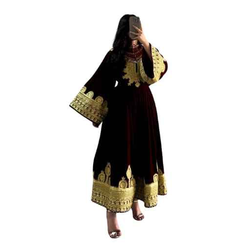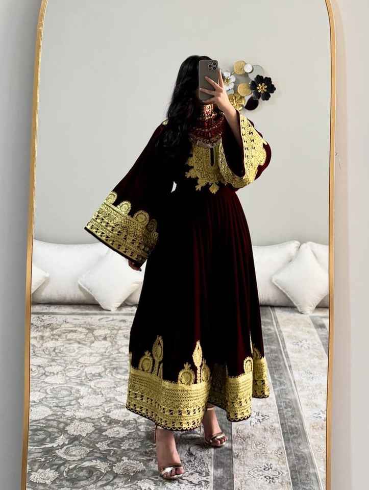 Best Quality Women's Vintage Afghani Dress Handmade Appliques Breathable Pakistan Made Velvet Embroidery Maxi Wedding Party