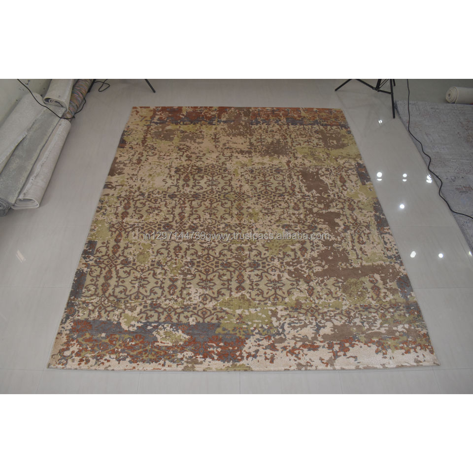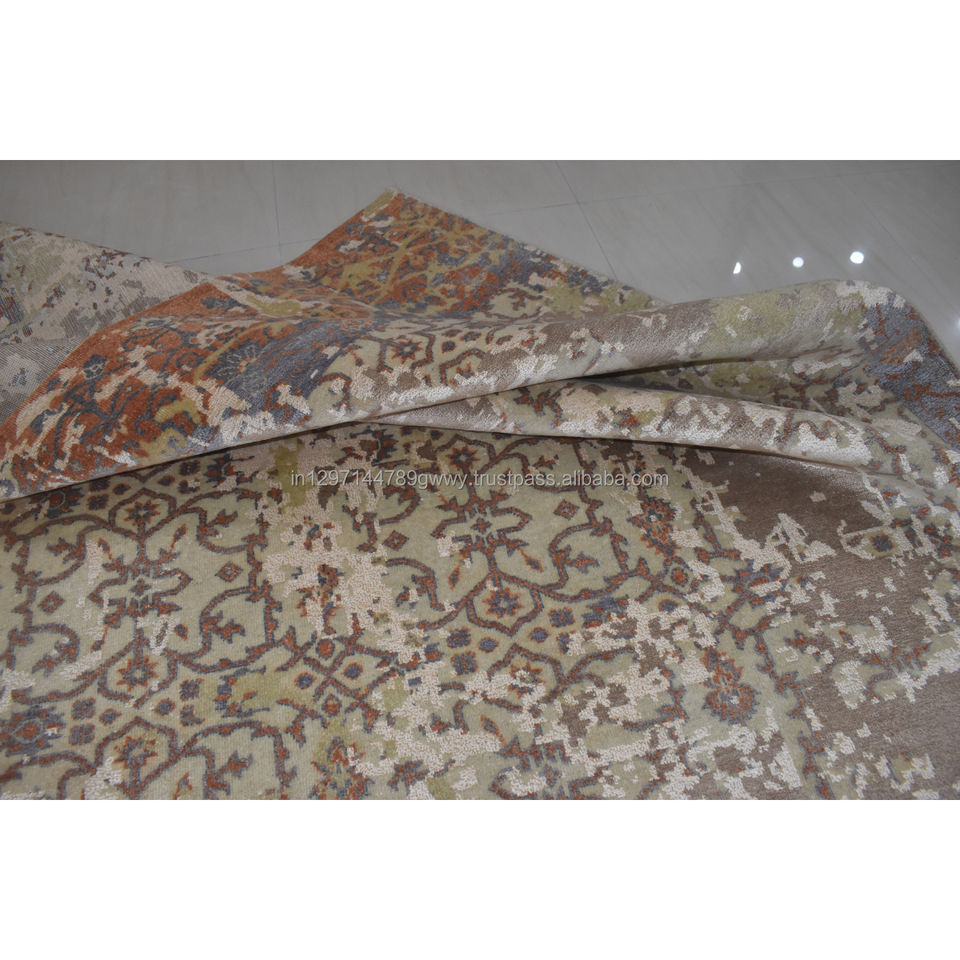 Best Quality Wool Hand Knotted Floral Design Accent Bedroom Carpets Washable Cut Pile for Home Hotel Use for Living Room