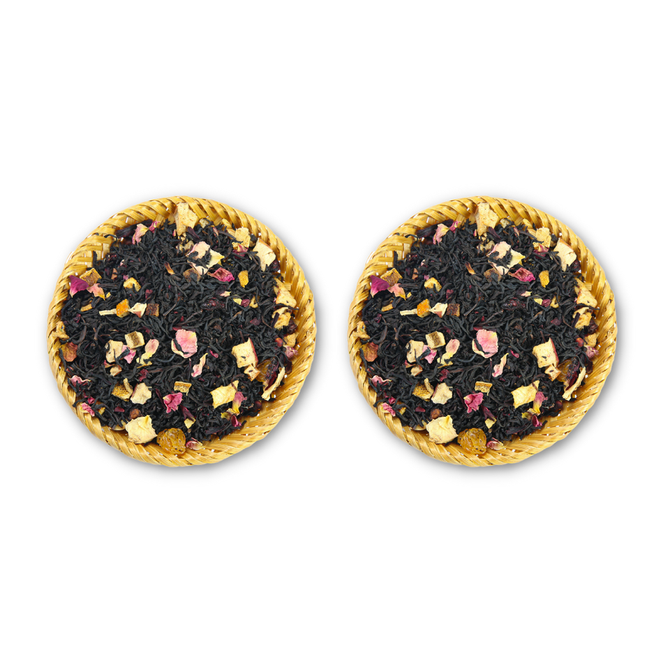 Fresh tea leaves, fresh flowers and fruitsIngredients