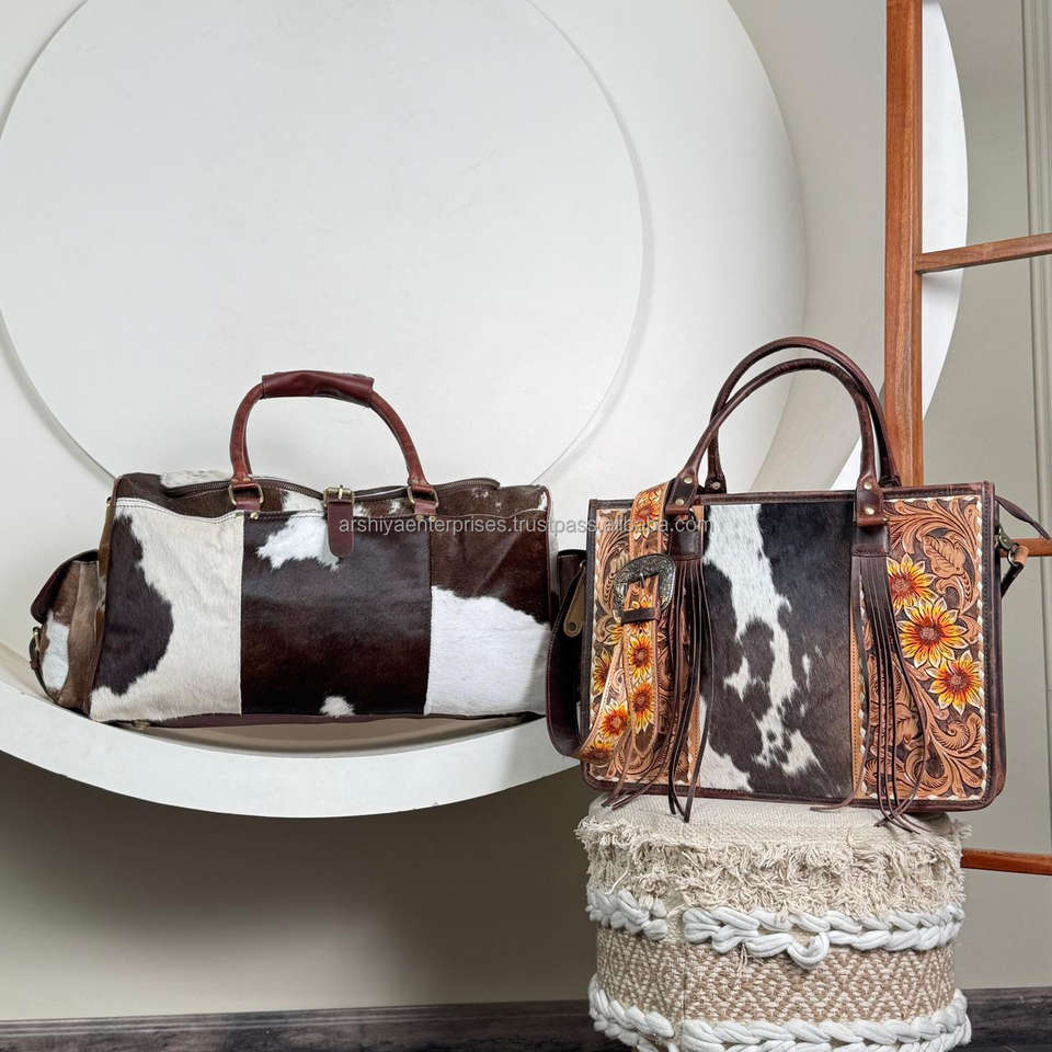 Product name:Hand Tooled Cowhide Leather Duffel Bag & Tote Bag