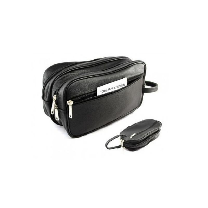 Best Sale Easy Clean Toiletry Bag Portable New Design Black Leather Men's Wash Bag S For Travel
