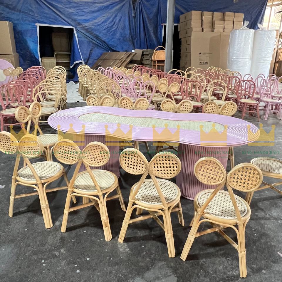 Best Sale Elegant Pink Natural Stylish Rattan Furniture Safe Comfortable Table Chair Sets for Living Room Kitchen Babies Kids