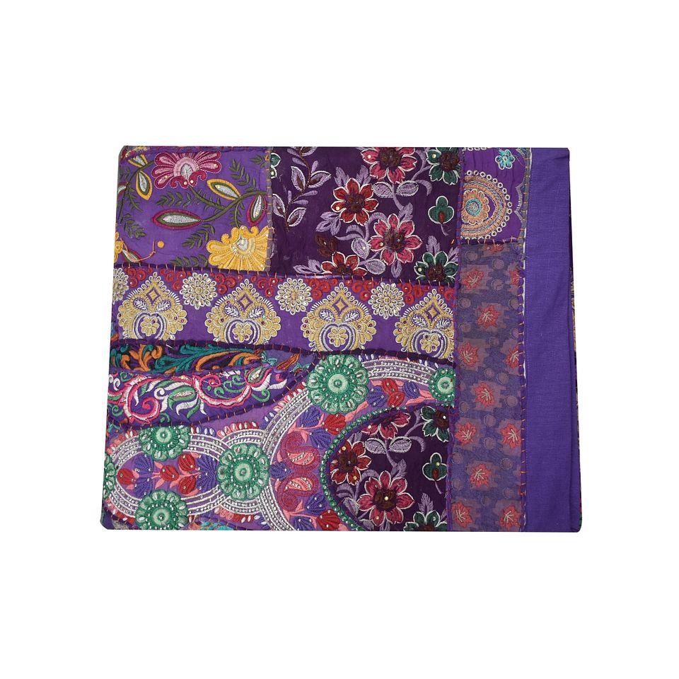 Best Sale Indian Queen Size Hand Stitched Patchwork Design Purple Color Unique End Less Vintage Sari Quilt, Throw and Blanket