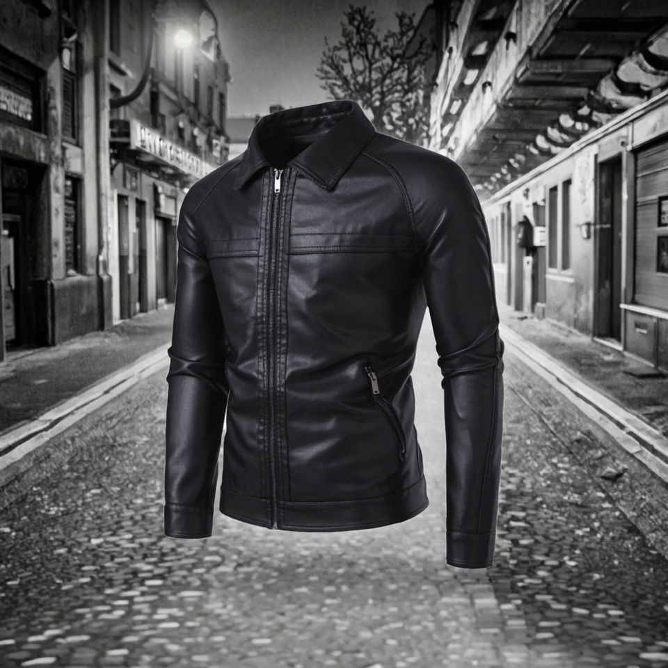 Best Sale Men's Vintage Style Leather Jacket Custom Made Stand Collar Plain Dyed Denim Fabric New Arrival for Winter Zipper