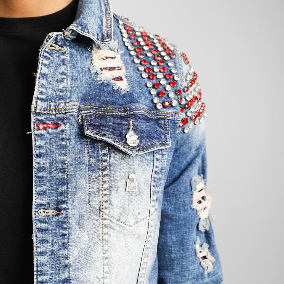 Men Denim Rhinestone Jacket