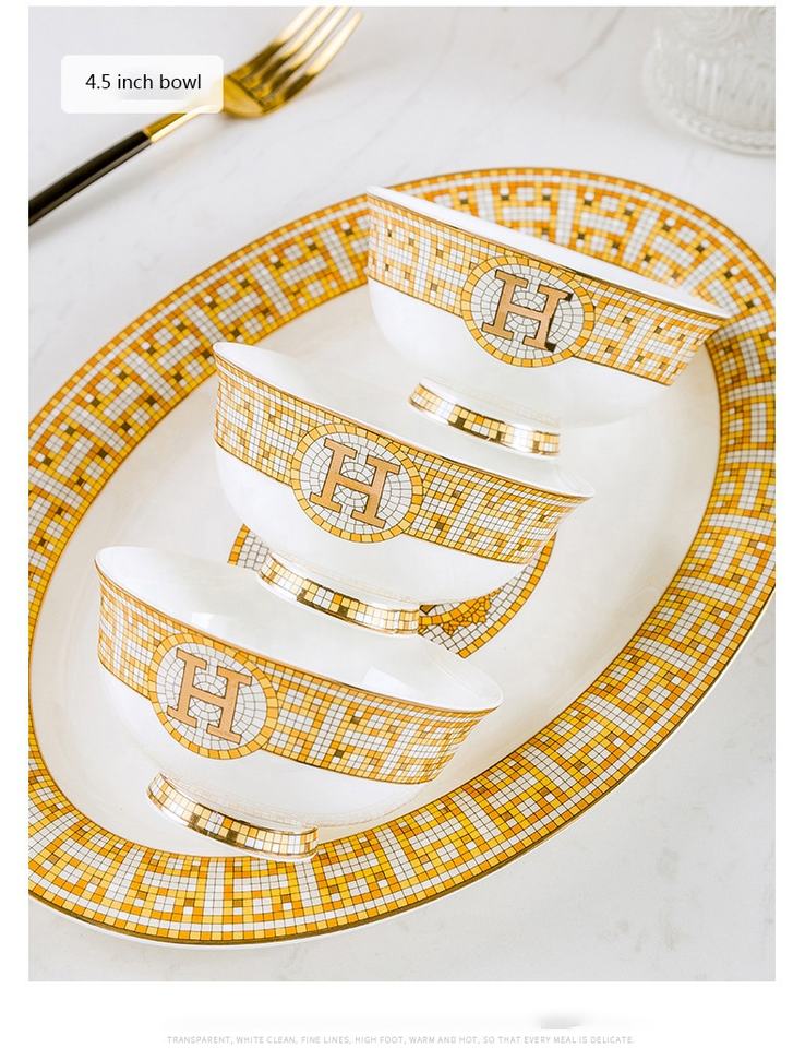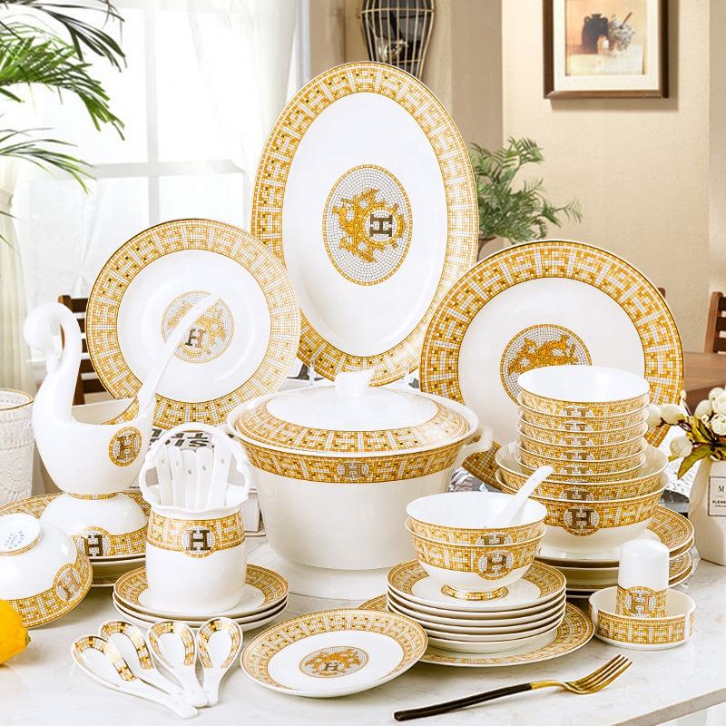 Best Sell Jingdezhen 60 Pcs Western Style Golden Mosaic Bone China Tableware Set