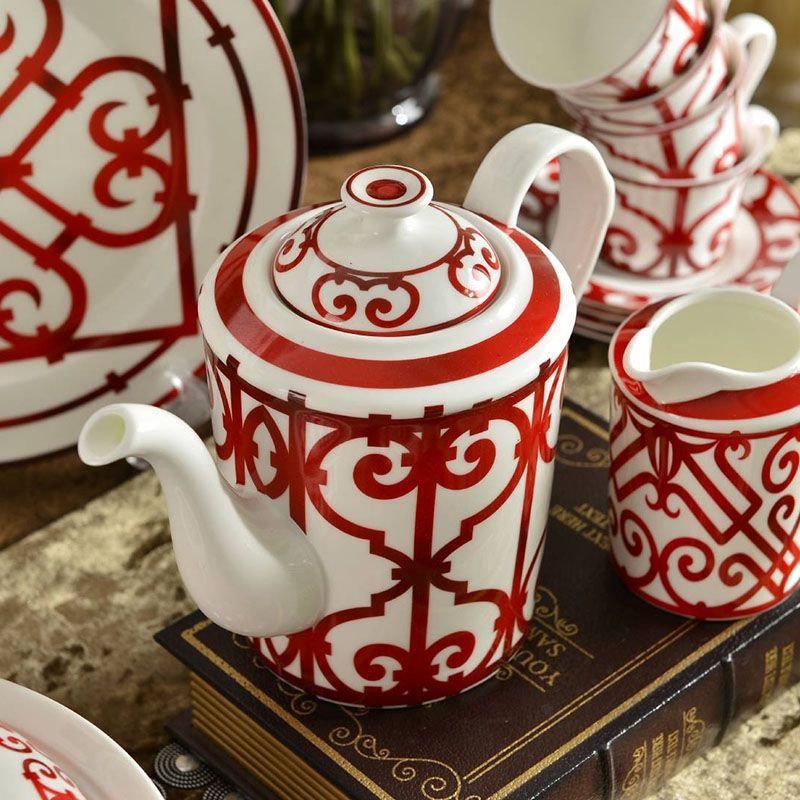 Best Sell Luxury Traditional Red Paper-cut Art Home Decors Bone China Coffee Tea Sets