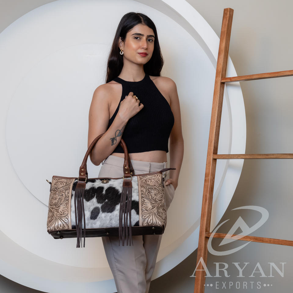 Product Name:Tooled Cowhide Leather Western Tote Bag