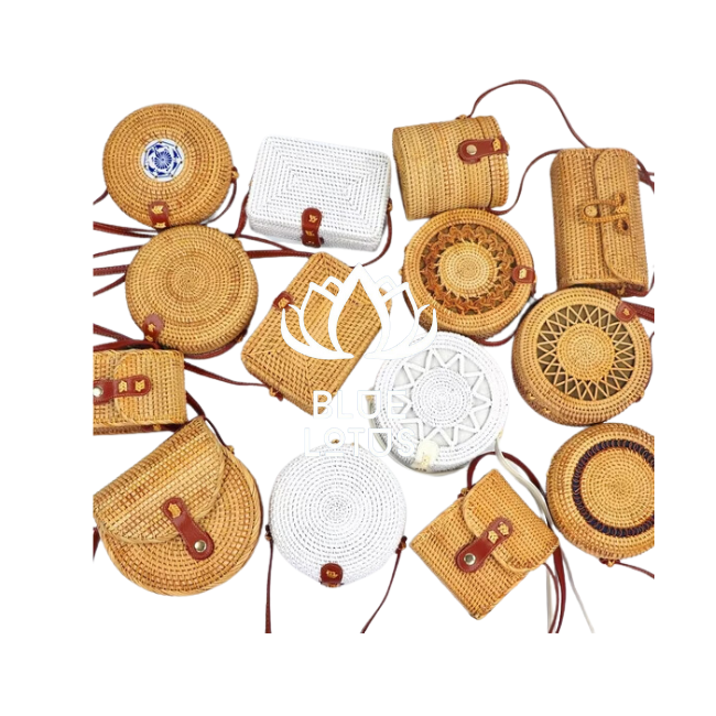 Best Seller 2025 Handmade Rattan Bag for Women Beach Style Circle Vintage Brown Modern Custom Simple Pattern Flower Ms.Cherish