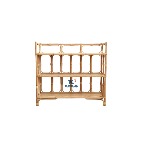 Best Seller 3-Tier Vintage Rattan Wooden Floor Stand Rack Shelves Wall Shelf for Decorative Use Direct From Vietnam Manufactory