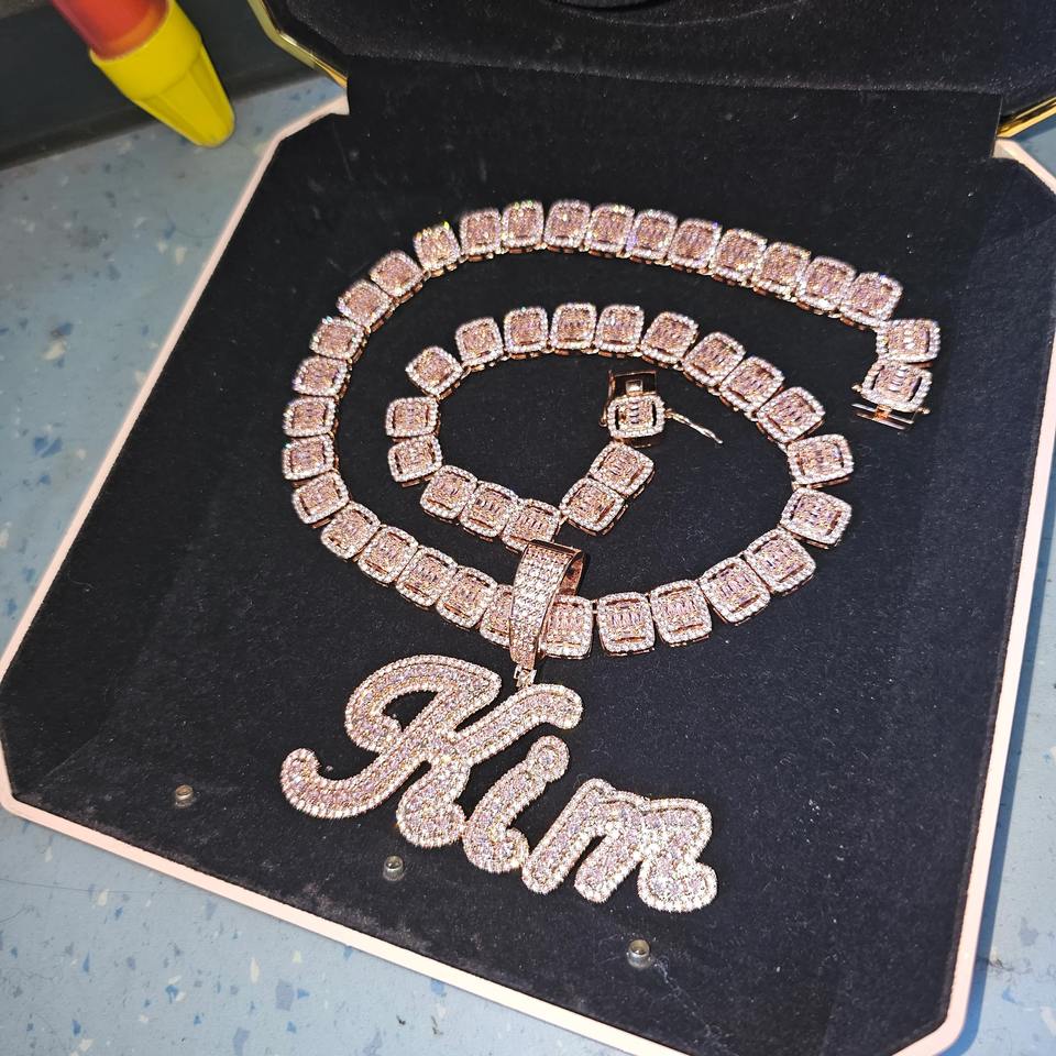 Best Seller Baguette VVS Moissanite Diamond Rose Gold Plated 925 Silver Cursive Letter Pendant Necklace For Men At Low Price