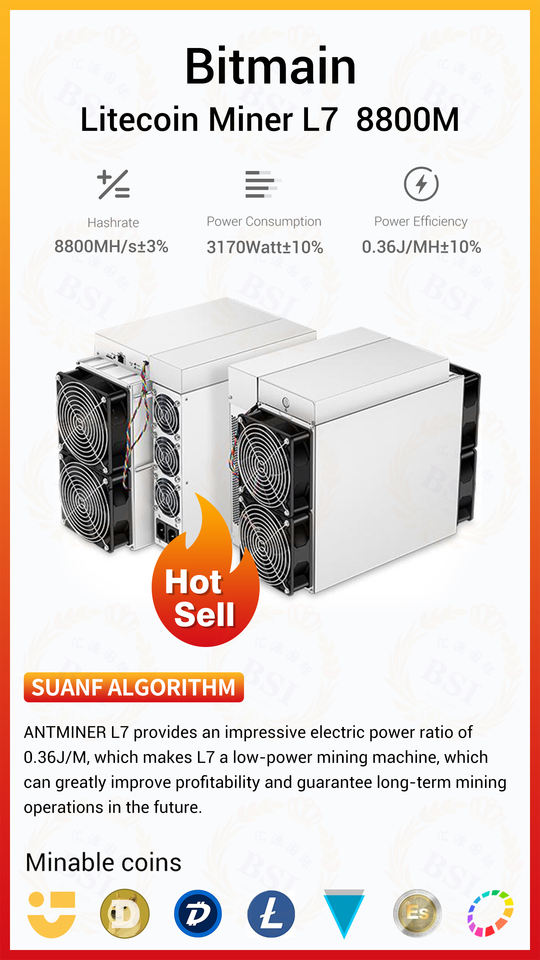 Best Seller Bitmain Antminer L7 9050M Miner With PSU Scrypt Algorithm L7 Asic Miner Crypto Litecoin Dogecoin Crypto Machine