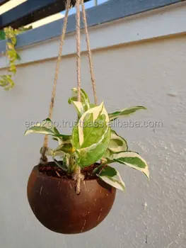 Best Seller Coconut Shell Garden Pot/ Coconut Shell Plant Pot With Hanging With Laser Logo Made in Eco2go Vietnam