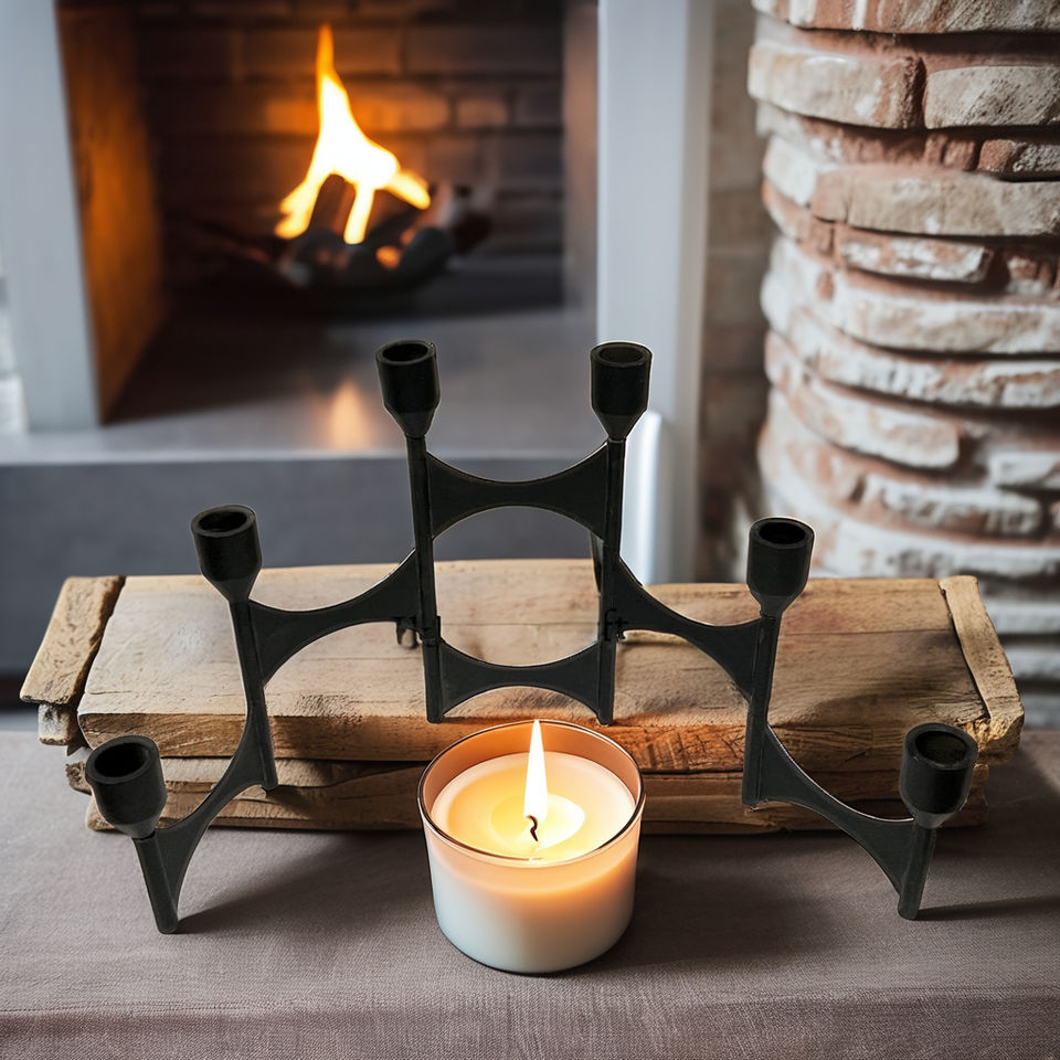 Best Seller Customised Black Metal Folding Candlestick Holder High Trending New Arrival Designer Private Labelling Iron Durable