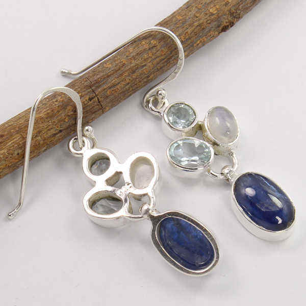 Best Seller Designer Party Wear Jewellery Natural Kyanite Oval Cabochon Multi Stone Earrings Pearl Diamond Trendy Gift Women