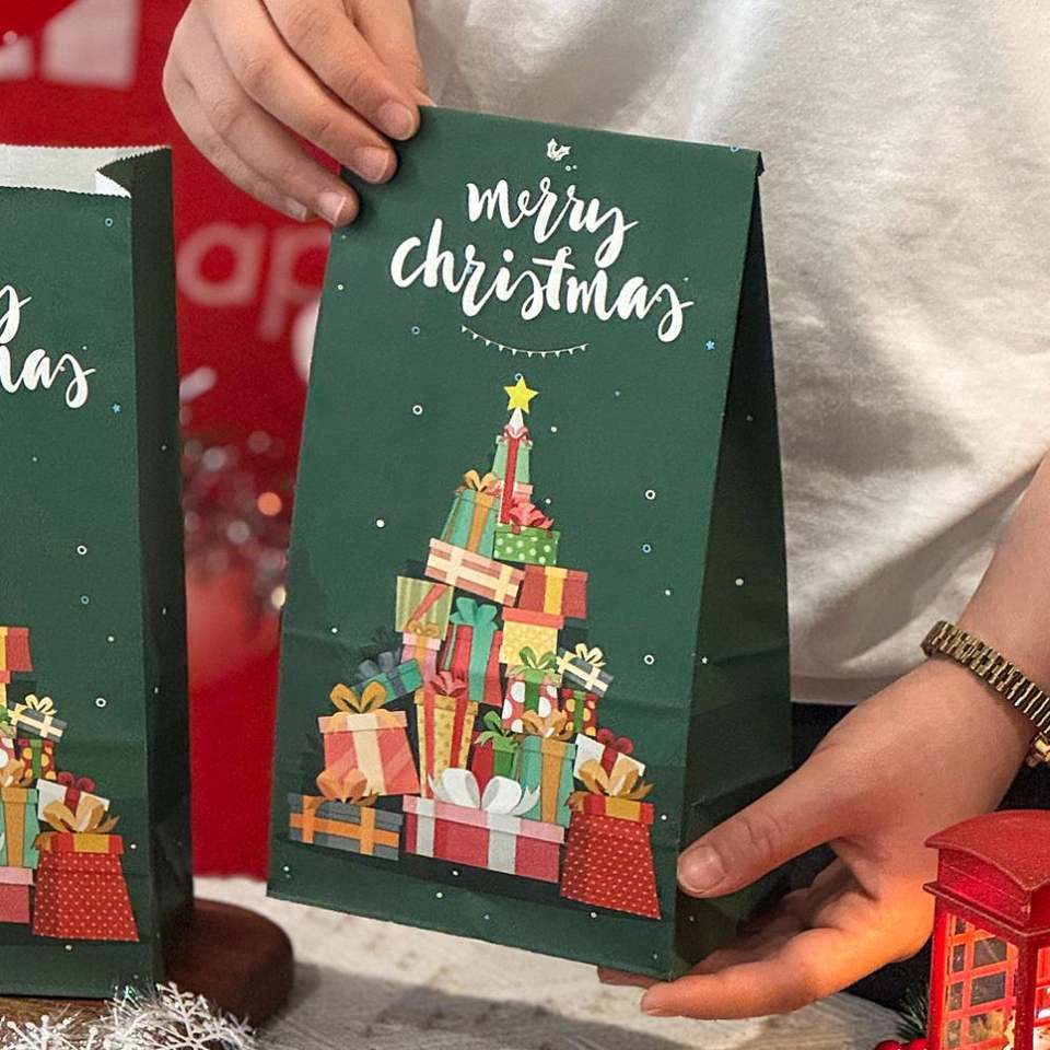 Best Seller Eco-Friendly Christmas Small Paper Gift Bags with Lamination Customized Logo Brown White Kraft Paper Bags