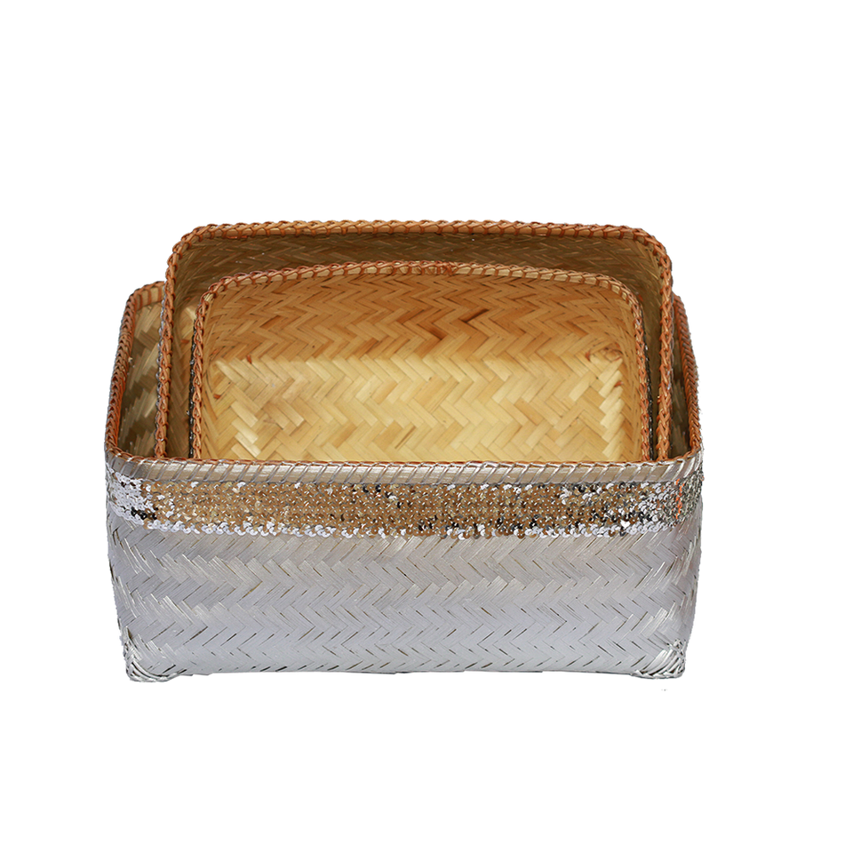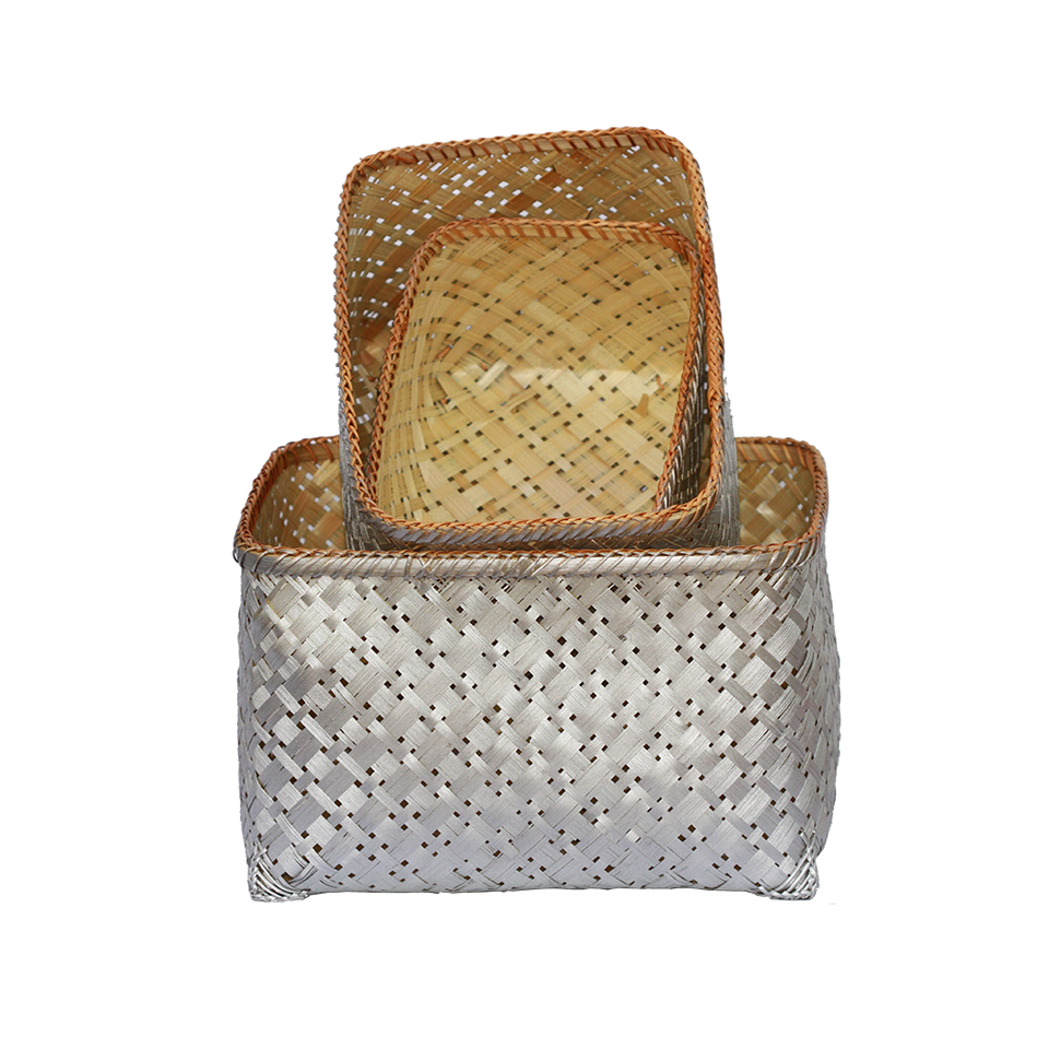 Best Seller Eco-Friendly Mini Size Silver Square Bamboo Organizer Container Lid 3-Piece Set for European Style Jewelry Storage