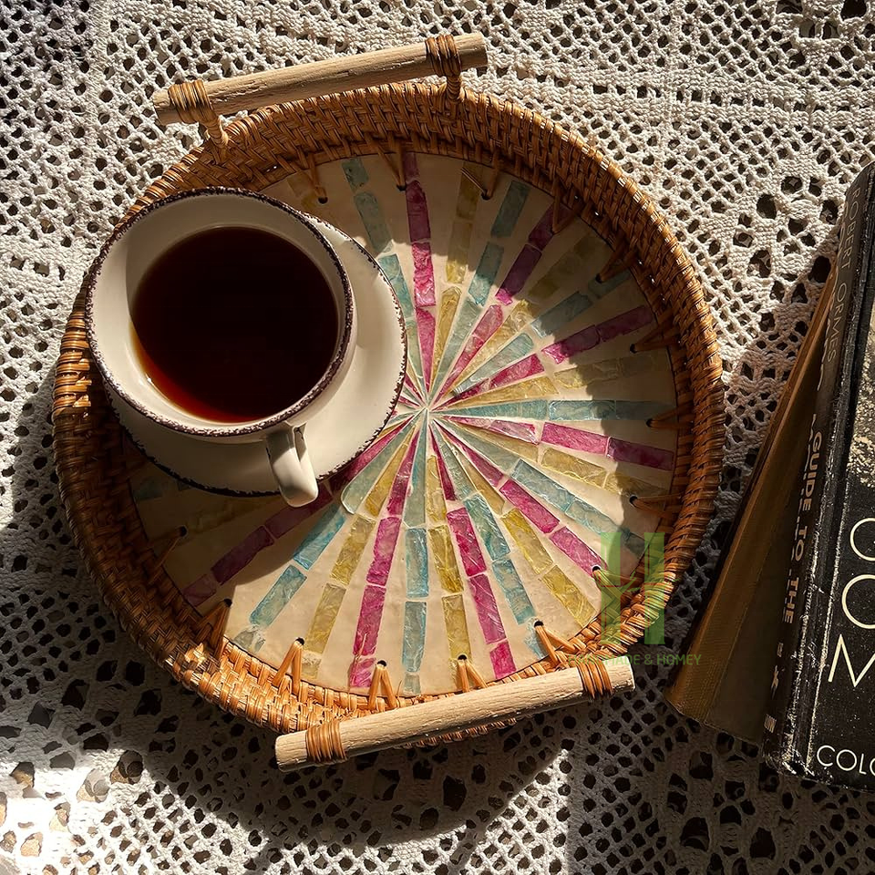Best Seller Eco-Friendly Round Rattan Tray Rectangle OEM Mother of Pearl Tray Serving and Charger Plates From Vietnam Factory