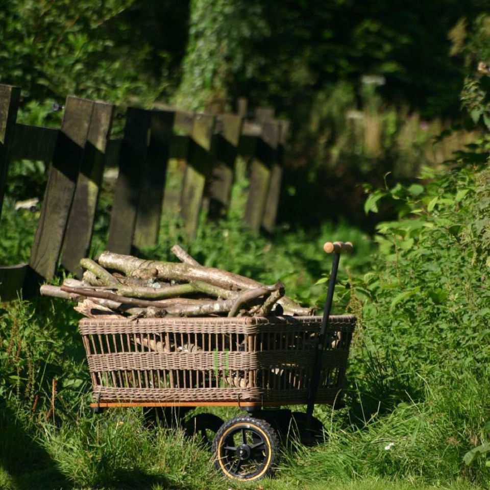 Best Seller European Wicker Basket Garden Wagon Farm Cart Poly Rattan Stroller Farming Big Cart Rattan 4 Wheel Trolley Vietnam