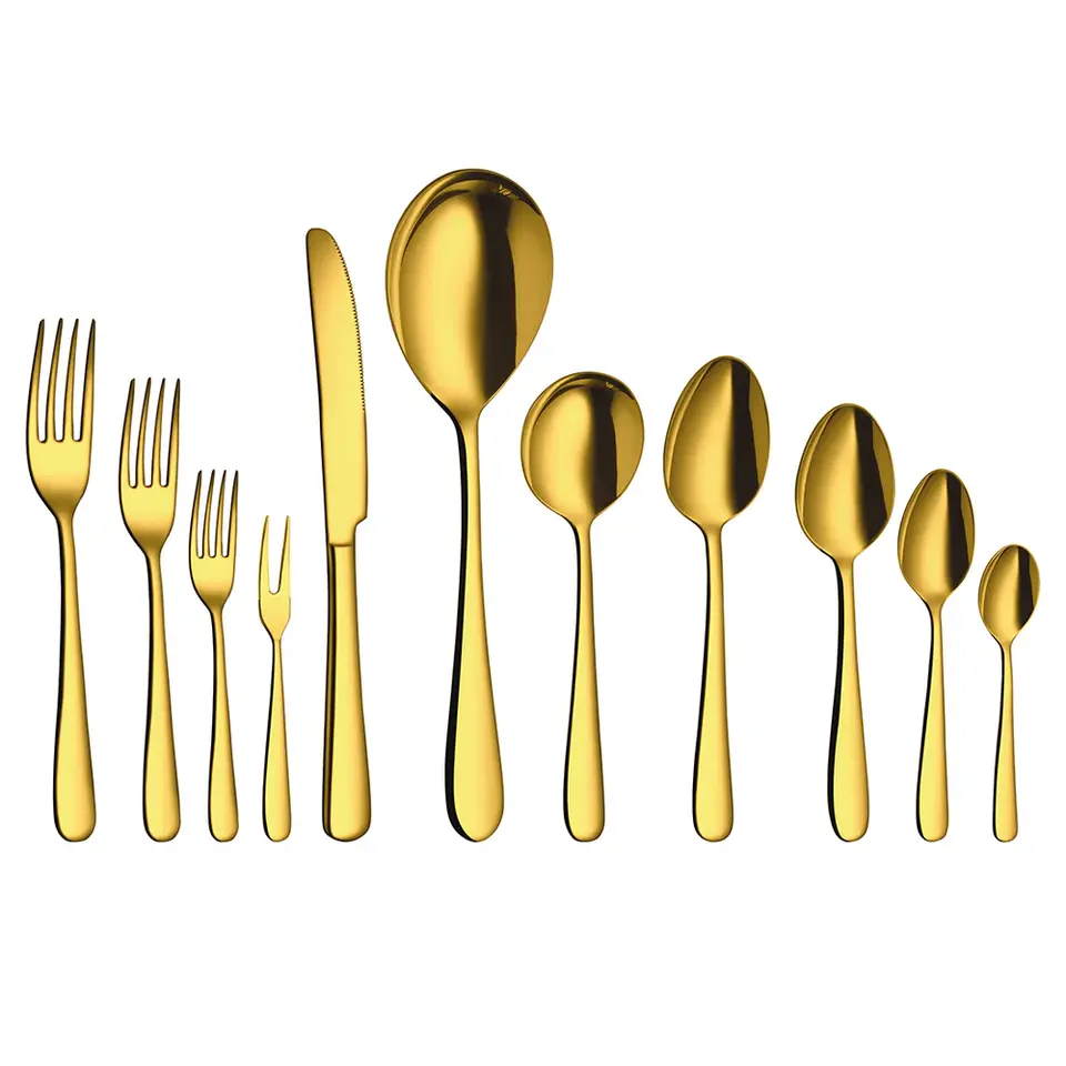 Best Seller Golden Shine Mirrored Steel Bulk Quantity Full Set Of 11 Cutlery Set Polish Finished Handcrafted Stainless Cutlery