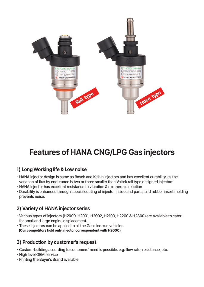 Best Seller HANA Assembly with CNG/LPG Injector Rail H2001 New Condition Engine Injector DC 12V ISO Certified [Made in Korea]