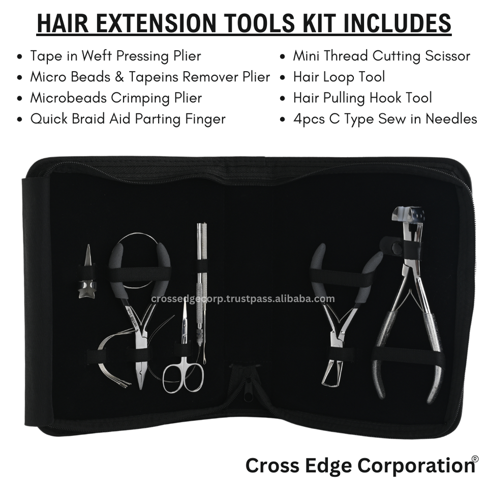 Best Seller Hair Extension Fitting Kit Double-Sided Tape Pressing Tool Micro Beads Pliers Fine Edge Scissor Pulling Loop Hook