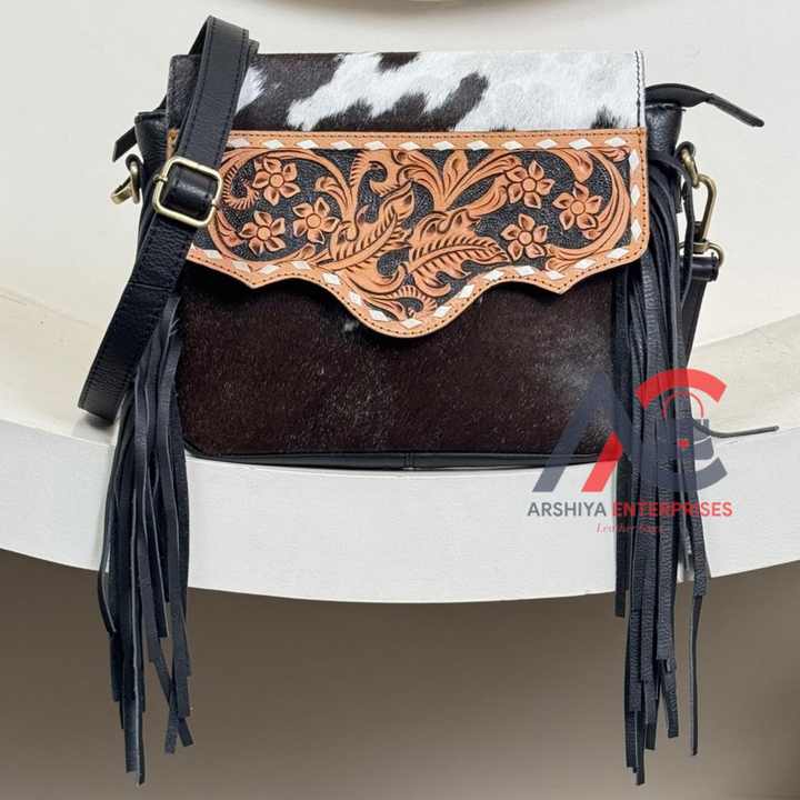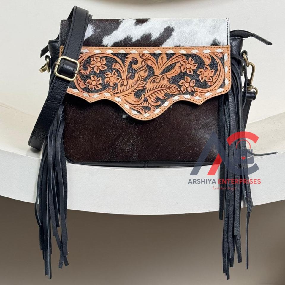 Best Seller Hand Tooled Leather Crossbody Fringe Bag for Women's Luxury Genuine Leather Designer Shoulder Bag Cowhide Handbags
