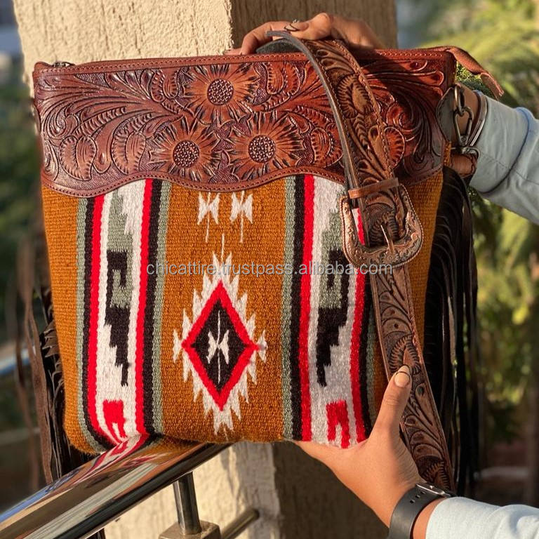 Best Seller Hand Tooled Saddle Blanket Genuine Leather Crossbody Bag for Women Western Tooled Shoulder Strap Conceal Carry Purse