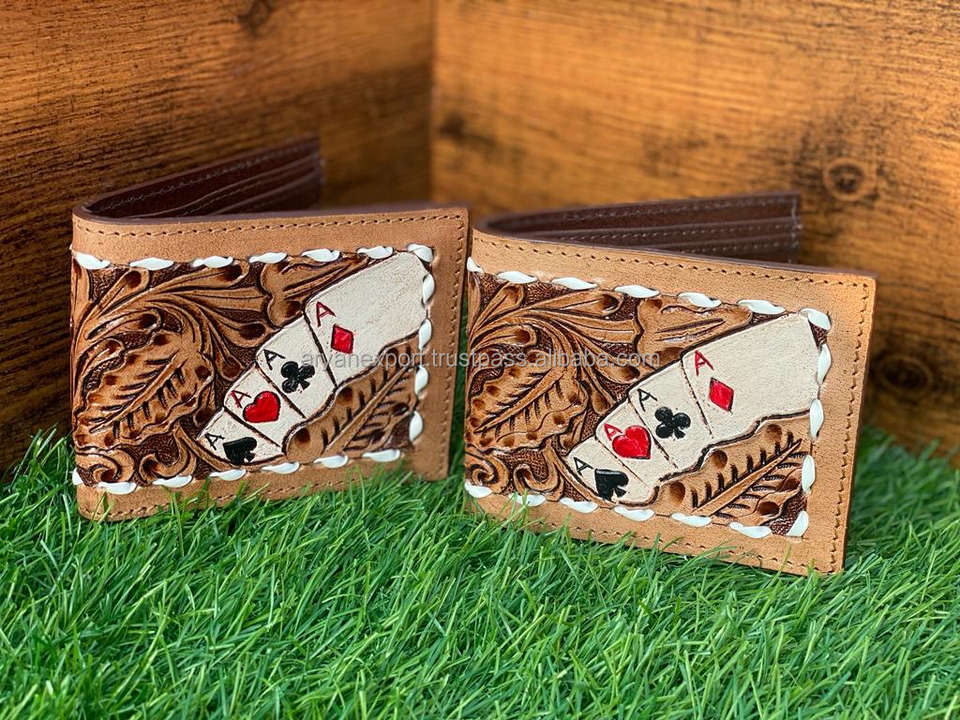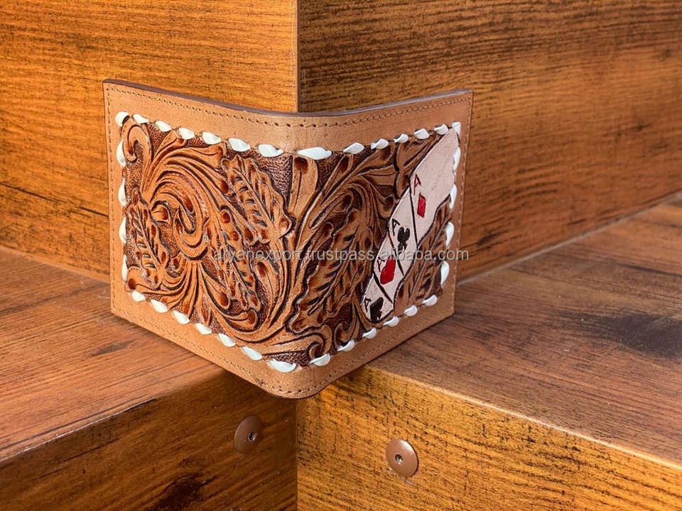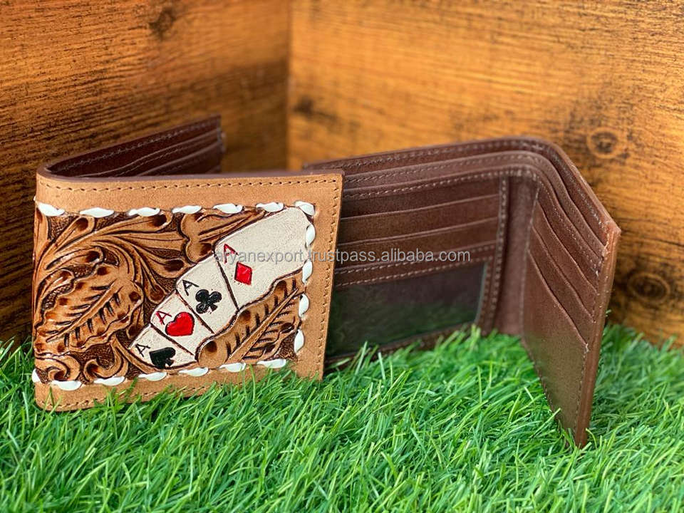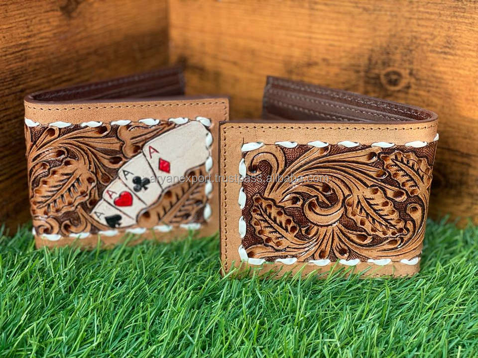 Best Seller Handmade Cowboy Genuine Leather Floral Hand Tooled Western Men's Wallet With Hand Carved Latest Men Luxury Wallet