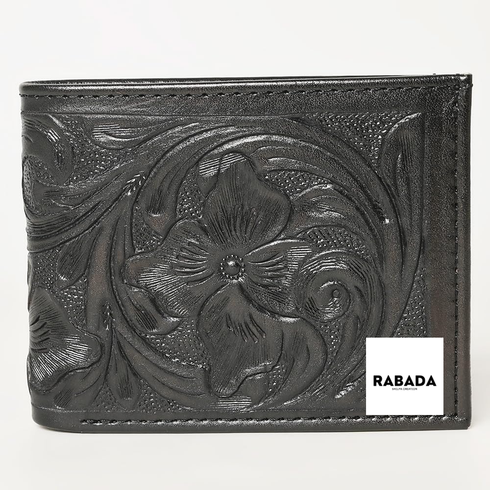 Best Seller Handmade Genuine Leather Floral Hand Tooled Western Men's Wallet With Hand Carved Latest Men Wallet