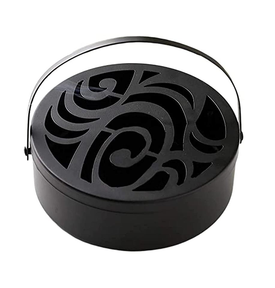 Best Seller Handmade Metal Mosquito Coil Holder Net Coil Box With Hollow Flower Black Coil Stand for Home Office Used.