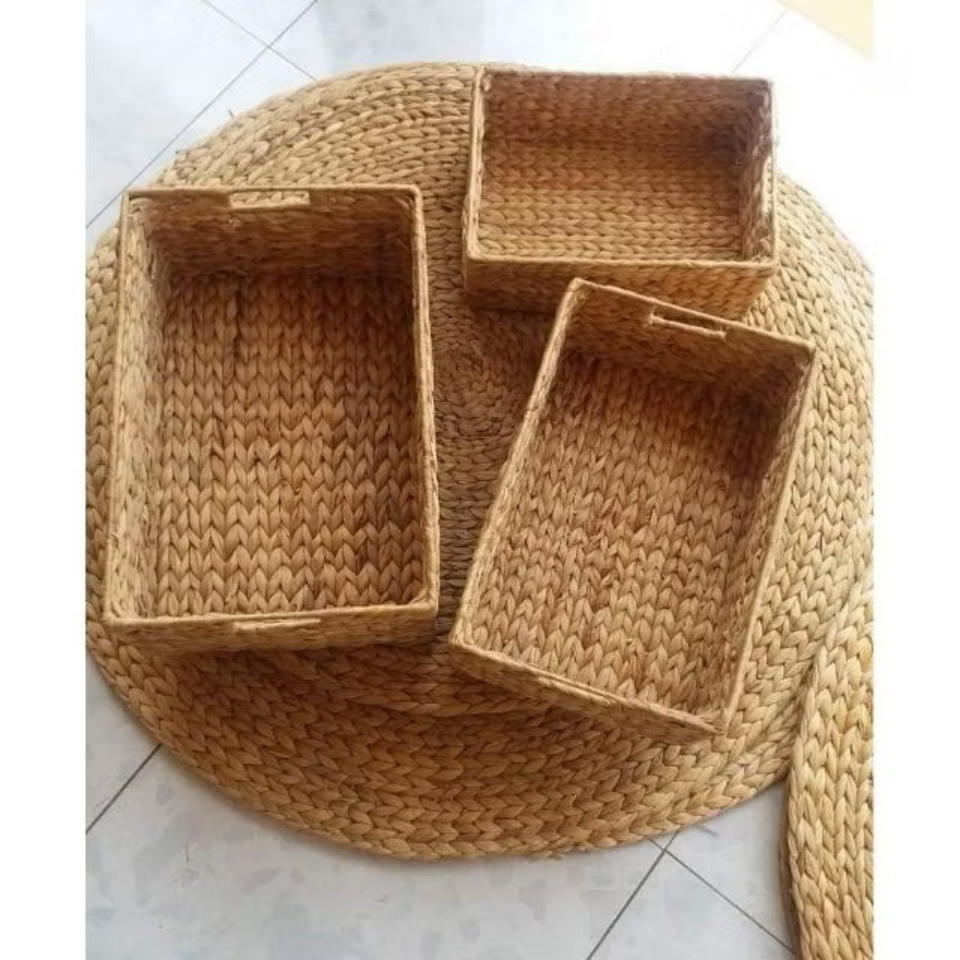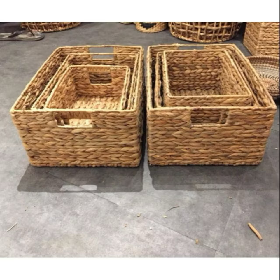 Best Seller Large Rectangle Square Handwoven Water Hyacinth Storage Basket Luxury Home Laundry Clothes Basket with Handles