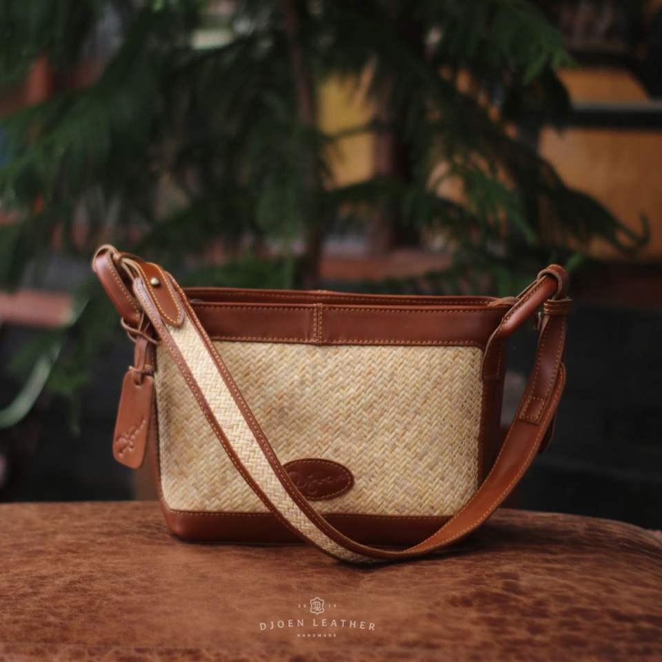 Best Seller Leather Naturea Crossbody Bag Handmade Woven Rattan & Genuine Leather Sling for Minimalist Tropical Style Indonesia