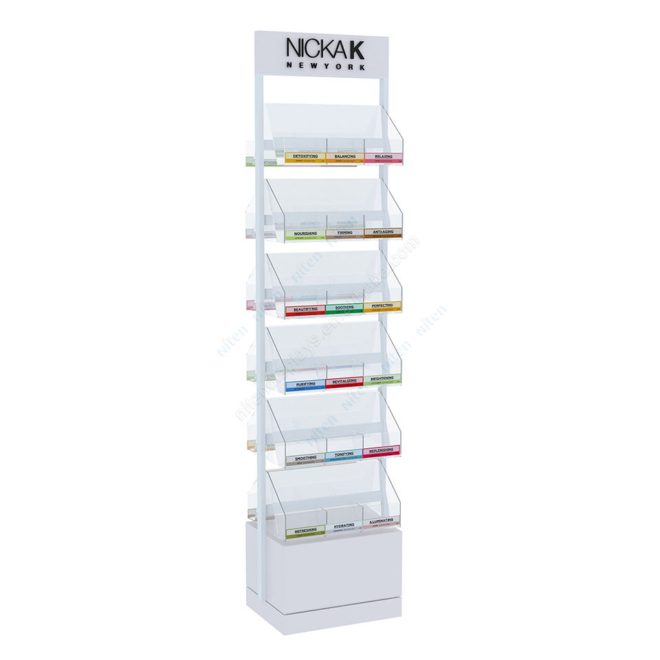 Best Seller Skincare Acrylic Organizer Rotating Display Dual-Sided Metal Floor Racks for Luxury Cosmetics Serum Cream Display