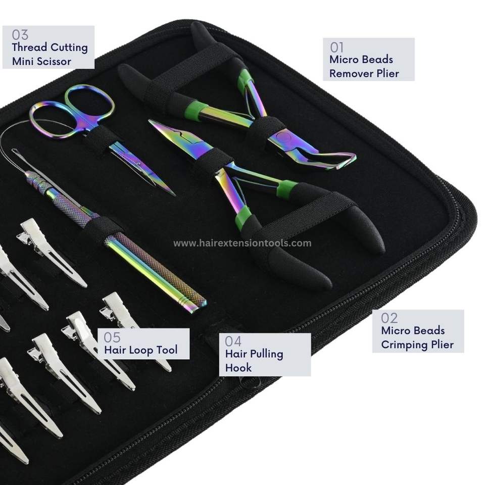 Best Seller Weft Hair Extension Tools Kit Beads Remover Plier Metal Sectioning Clips Thread Loop Tool Finger Tool Stitch Braids