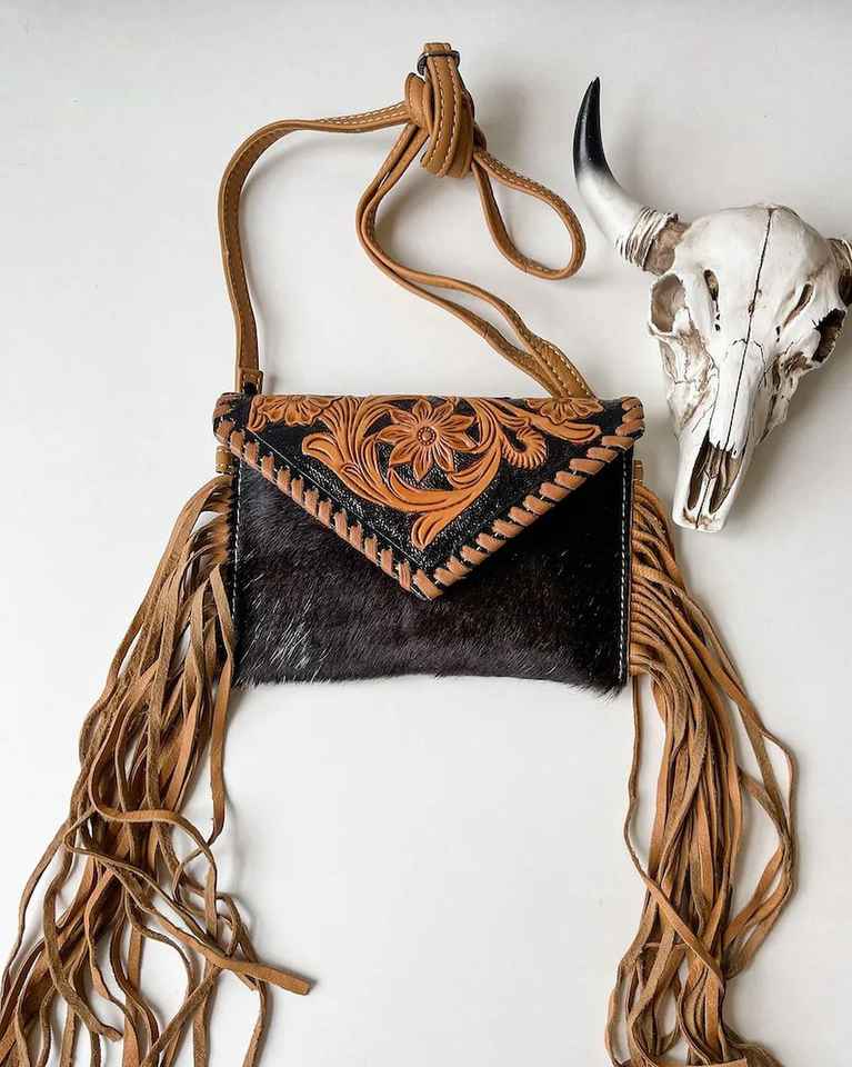 Best Seller Autumn Custom Western Bohemian Cowgirl Style Tassel Leather Sling Bag with Customizable Color at Wholesale Price