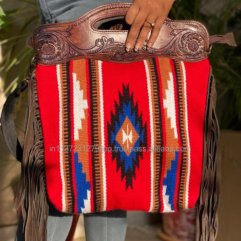 Best Seller Western Leather Purse Crossbody Fringe Bag Tooled Conceal Carry Saddle Blanket Women's Purse Wholesale Manufacturer