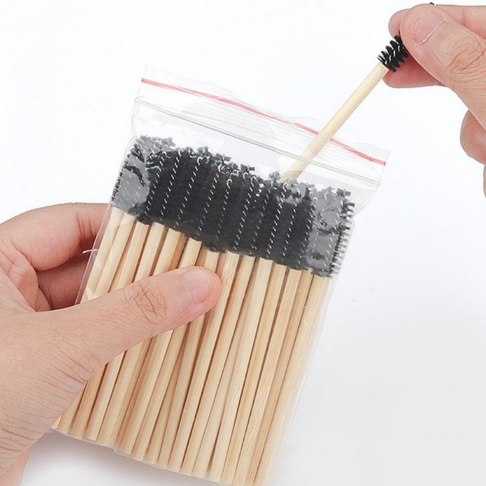 Best Seller Wholesales Customized Logo Bamboo Handle Disposable Mascara Wand Eyelash Brush Nylon Eco Friendly Beauty Tools