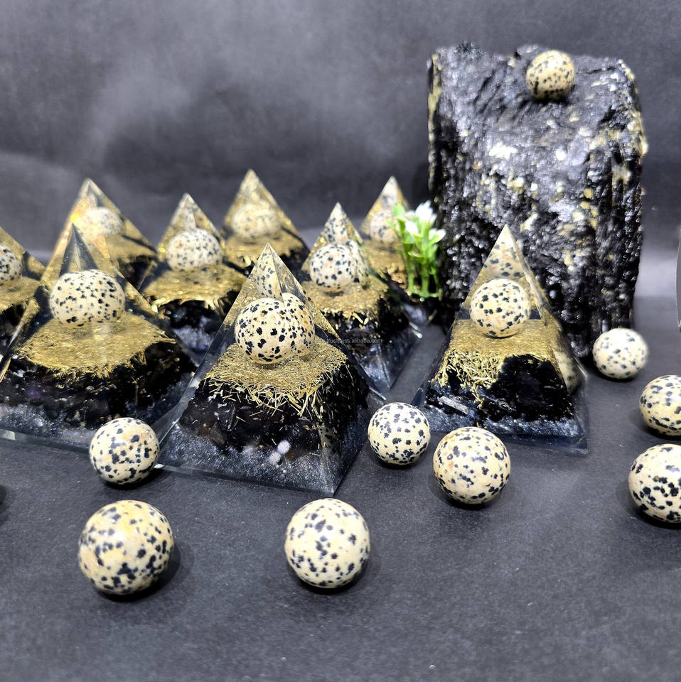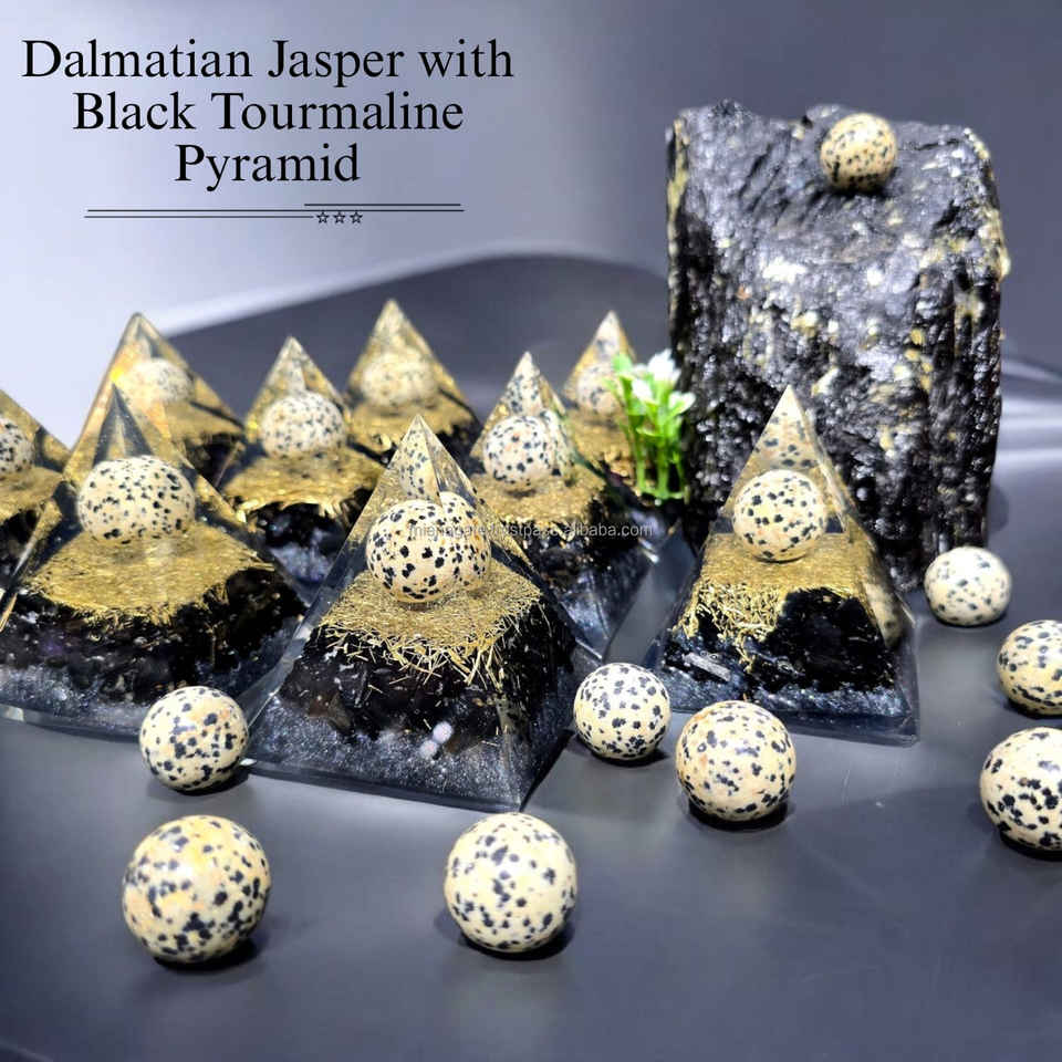 Best Seller of Orgone Pyramid Natural Crystal Gemstone Black Tourmaline Dalmatian Jasper Sphere Decoration Healing Gift in Bulk