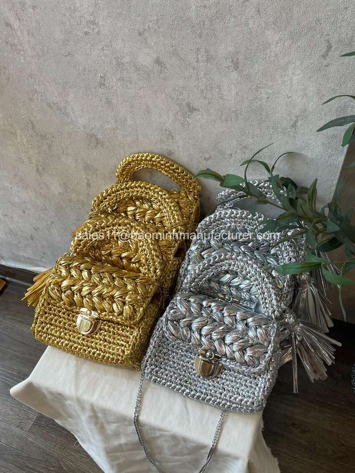 Best Sellers 2024 Luxury Gold Metallic Bag, Metallic Crochet Tote Bag,Handmade Evening Handbag Summer Bag From Vietnam